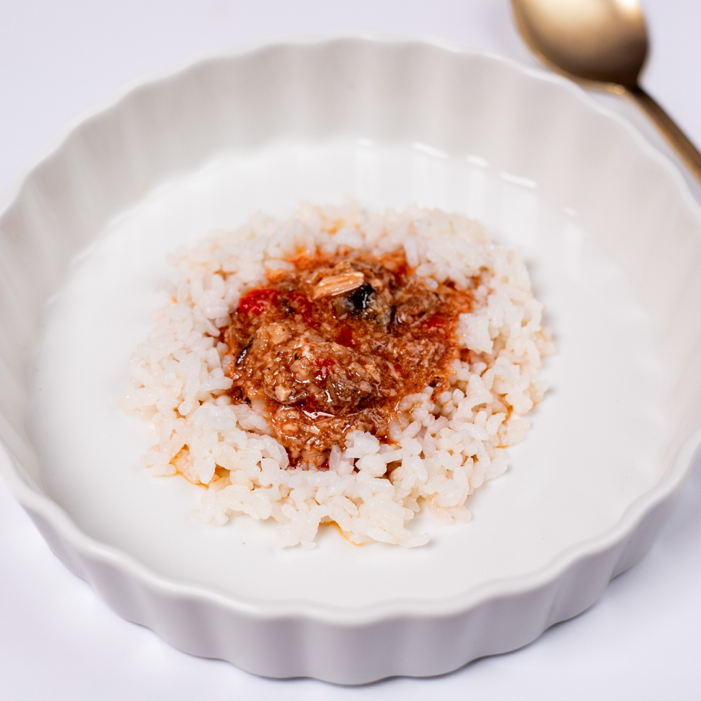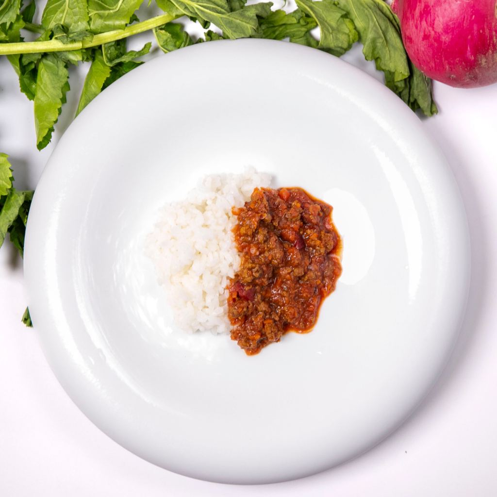 【原材料】有機ダイストマト(イタリア)、黒毛和牛ミンチ(長野)、チキンボーンブロス、しいたけ、マッシュルーム、えのき、エリンギ、まいたけ、たもぎ茸、なめこ、無塩バター