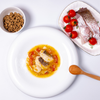 【原材料】鯛(明石)、チキンボーンブロス、トマト、じゃがいも、かぼちゃ、まいたけ、オリーブ油、吉野本葛