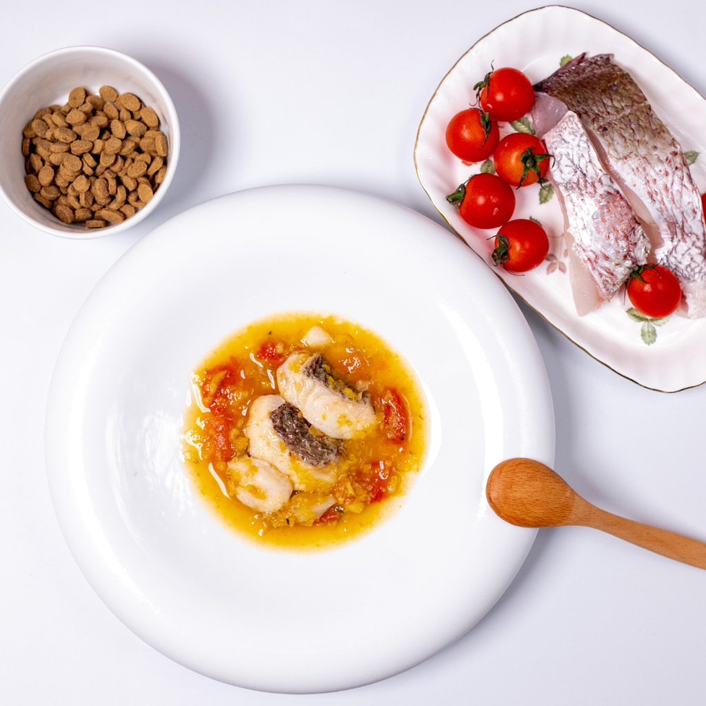 【原材料】すずき(大阪)、チキンボーンブロス、パプリカ、かぼちゃ、小松菜、小麦粉、オリーブ油